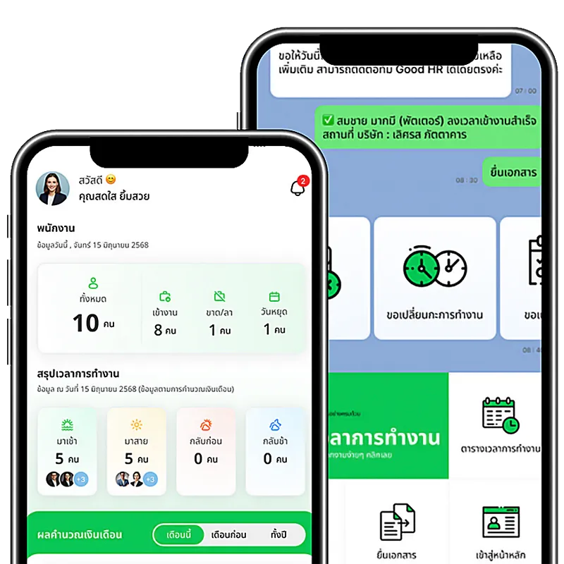 Good HR คือแอปพลิเคชันสำหรับคิดเงินเดือนให้พนักงาน ที่ช่วยให้เจ้าของกิจการสามารถคิดเงินเดือนให้พนักงานได้อย่างถูกต้อง รวดเร็ว และลดความผิดพลาดเรื่องการทำเงินเดือน พร้อมออกสลิปเงินเดือนให้พนักงานได้เลยทันที